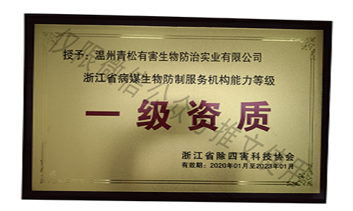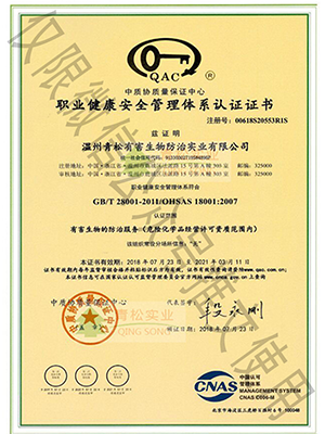 國(guó)家級(jí)有害生物防制認(rèn)證機(jī)構(gòu)A級(jí)證書/浙江省病媒生物防制服務(wù)機(jī)構(gòu)能力等級(jí)一級(jí)資質(zhì)